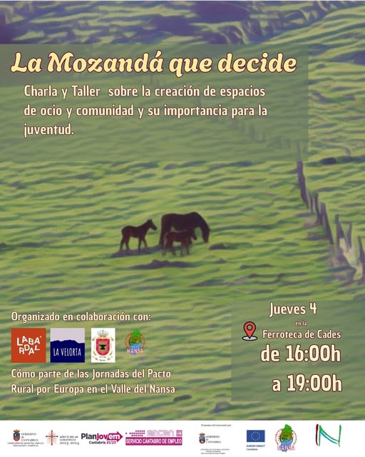 La primera jornada, titulada «La Mozandá que decide», estuvo dedicada a la juventud del Valle del Nansa, y contó con la participación de dos asociaciones juveniles: La Velorta y La Bardal. El encuentro se planteó como un espacio de escucha activa, en el que las y los jóvenes compartieron cómo es su vida en el pueblo, qué necesidades identifican para poder quedarse y qué cambios consideran necesarios para construir un futuro con oportunidades en el medio rural.