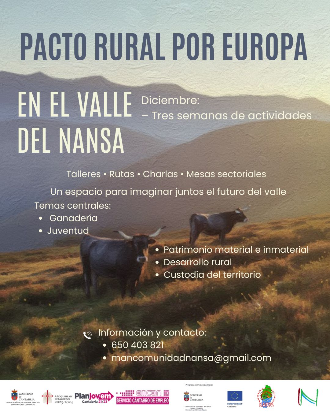 Desde el mes de mayo hasta diciembre de 2025 la Mancomunidad de Municipios «Nansa» ha ejecutado el programa NANSA VIVA, CONECTANDO TRADICIÓN Y FUTURO EN UNA EUROPA UNIDA Y DIVERSA, subvencionado por la Dirección General de Asuntos Europeos de la Consejería de Economía, Hacienda y Fondos Europeos del Gobierno de Cantabria.