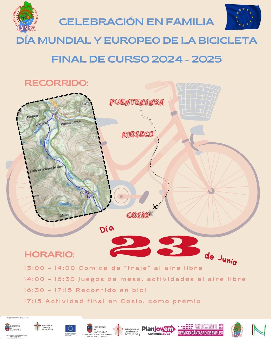 El equipo de Jóvenes con Talento de la Mancomunidad de Municipios Nansa ha celebrado el 23 de junio de 2025 el “Día Mundial y Europeo de la Bicicleta” con la intención de concienciar sobre los beneficios de la bicicleta para la salud, el medio ambiente y la movilidad de las personas, así como promover la seguridad de los ciclistas.